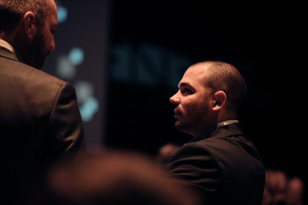 Jordan Samhi walking to present his PhD research at the PhD Graduation day 2023