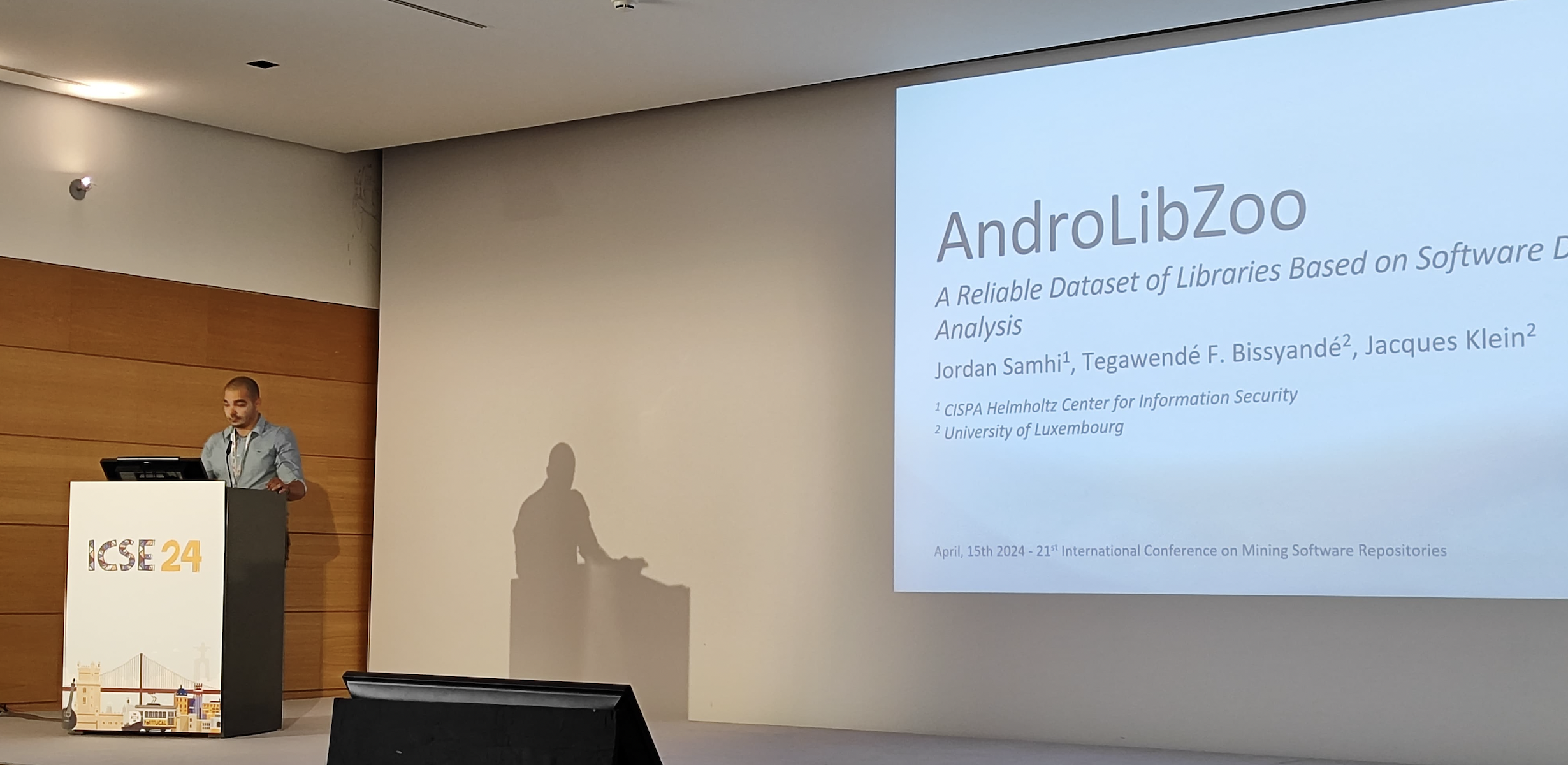 Jordan Samhi presenting AndroLibZoo at ICSE in Lisbon 2024